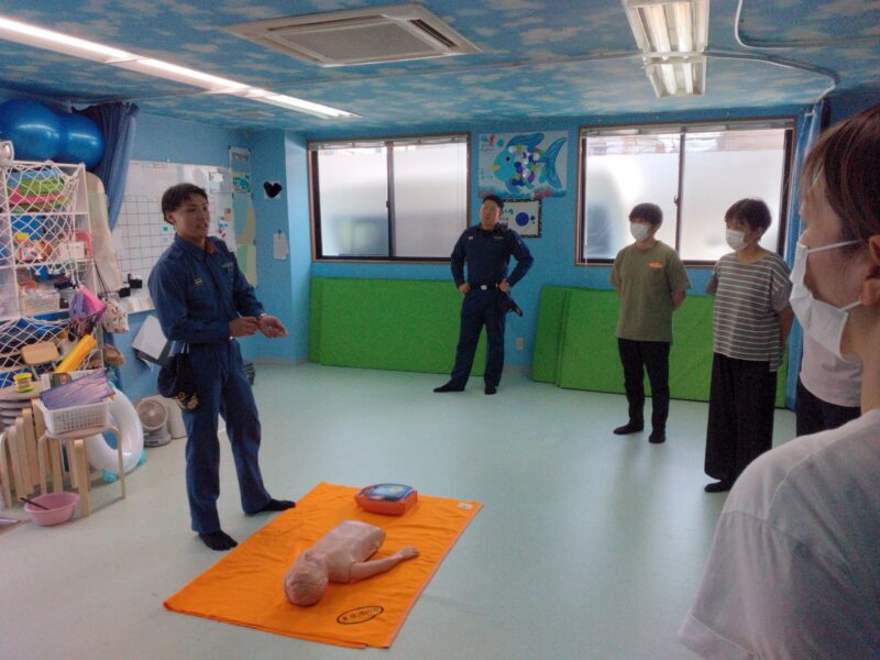 また、学校長期休業日期間中にるりいろで行っている地震・火事・水害訓練についても、この自衛消防訓練の中でアドバイスをいただく時間を設けています。