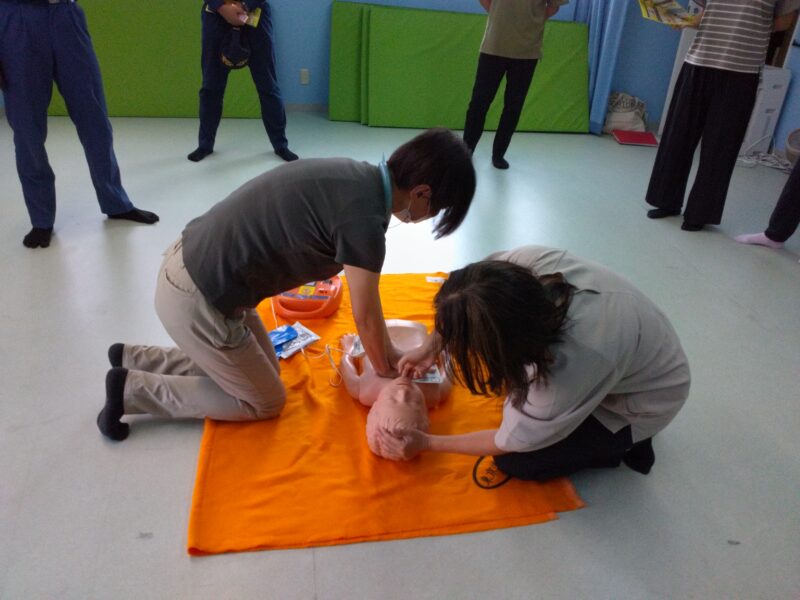 るりいろにありますアンビューバッグ(蘇生バッグ)を看護師が使用し、呼吸介助を行う訓練もしました。