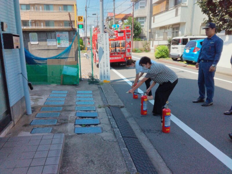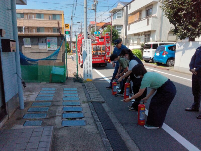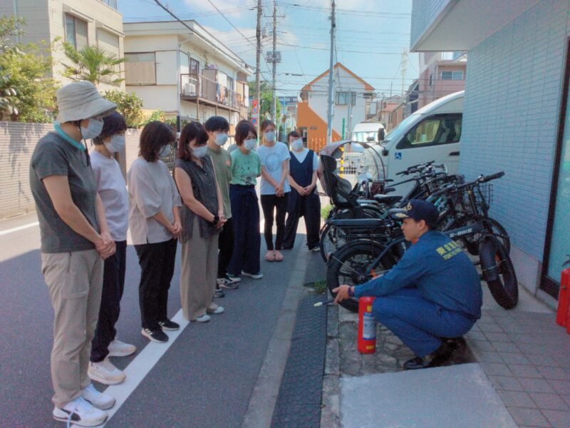 るりいろでは毎回、杉並消防署馬橋出張所の職員さんにお越しいただき、消火訓練を指導していただいています。