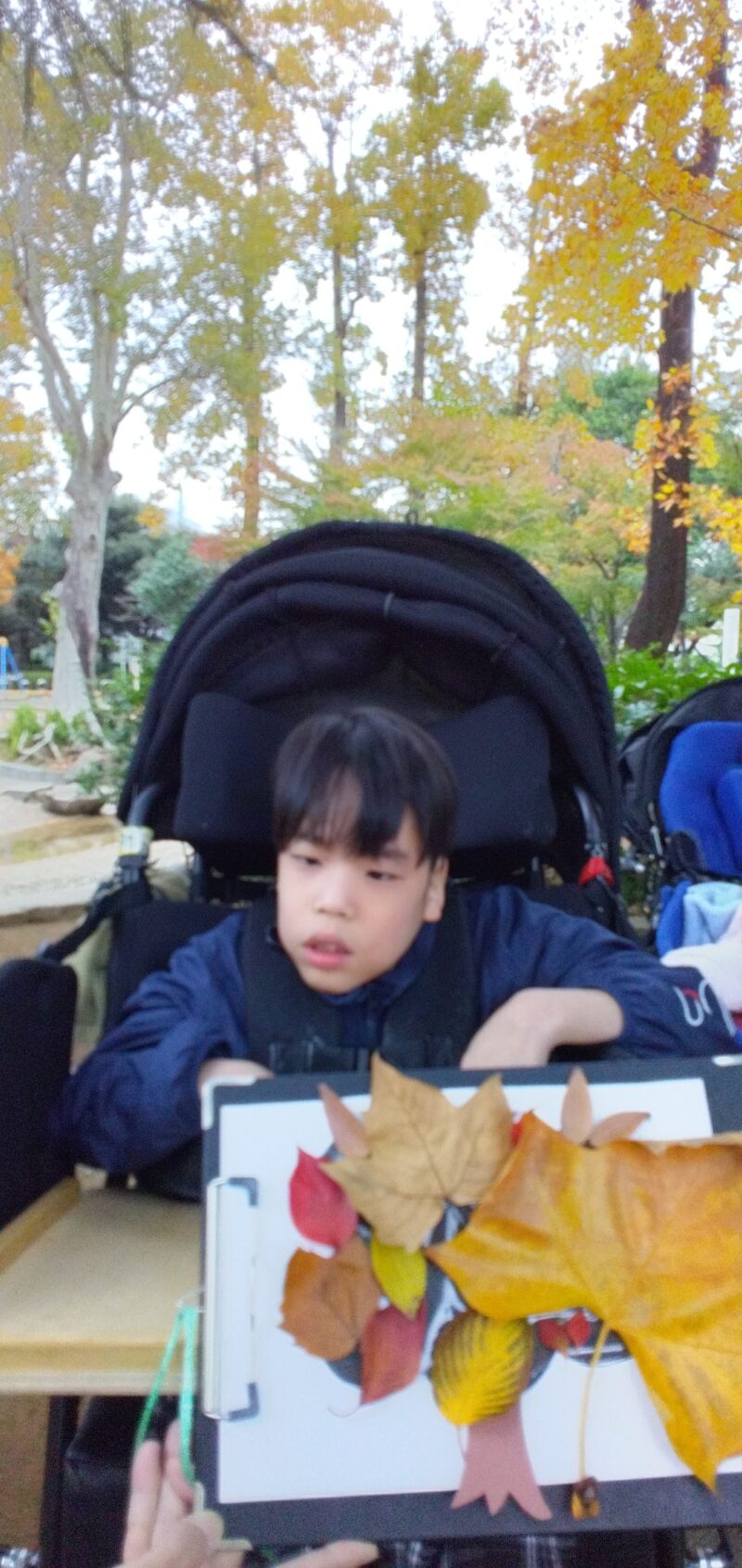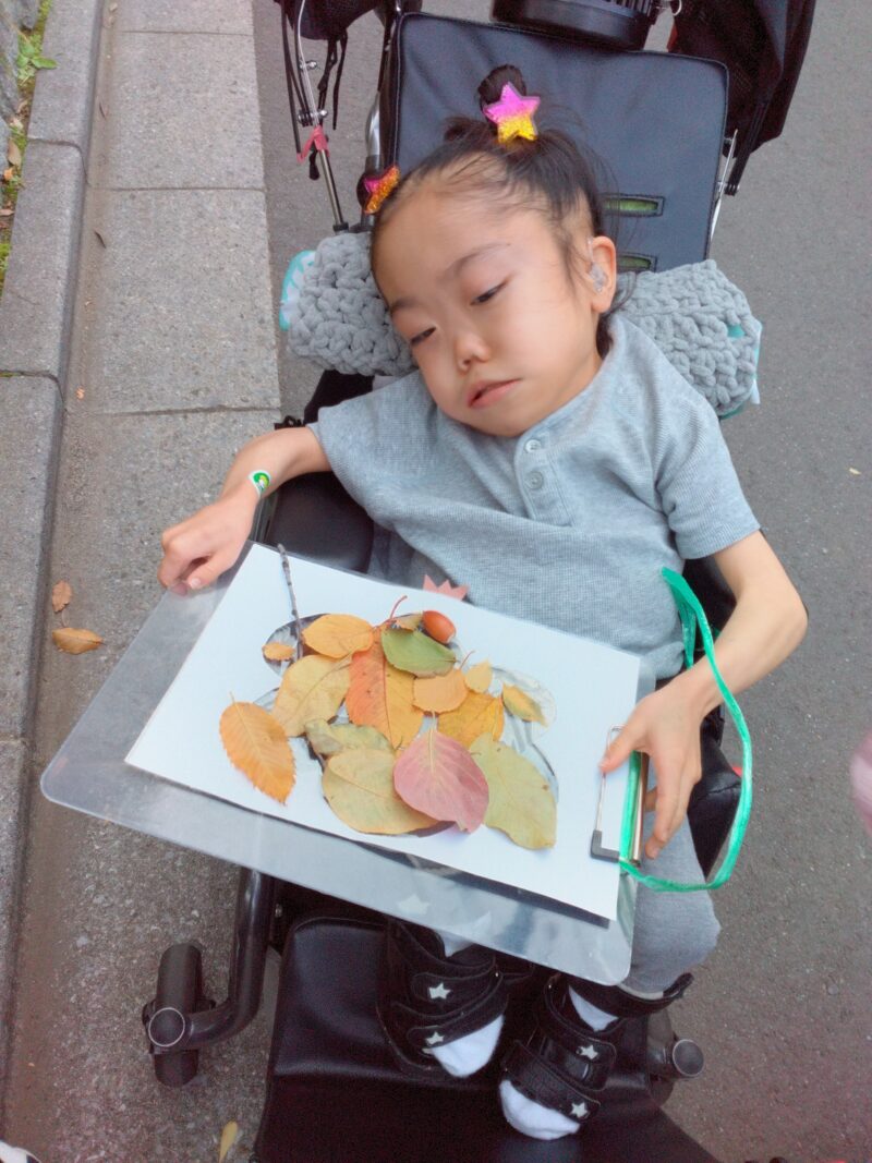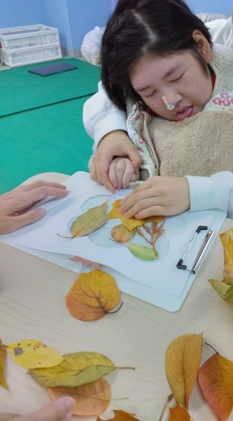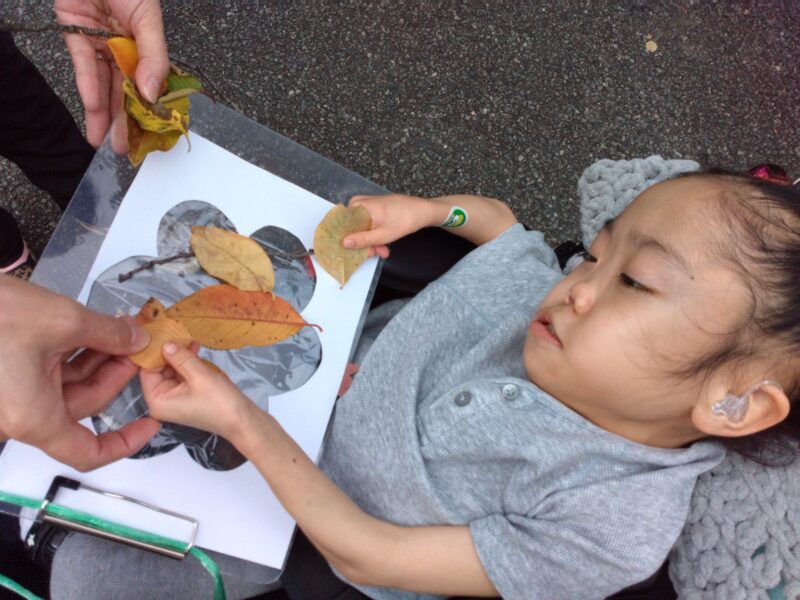 公園で落ち葉を拾い、その場で紅葉製作に取り組んだお子さまもいらっしゃいます。