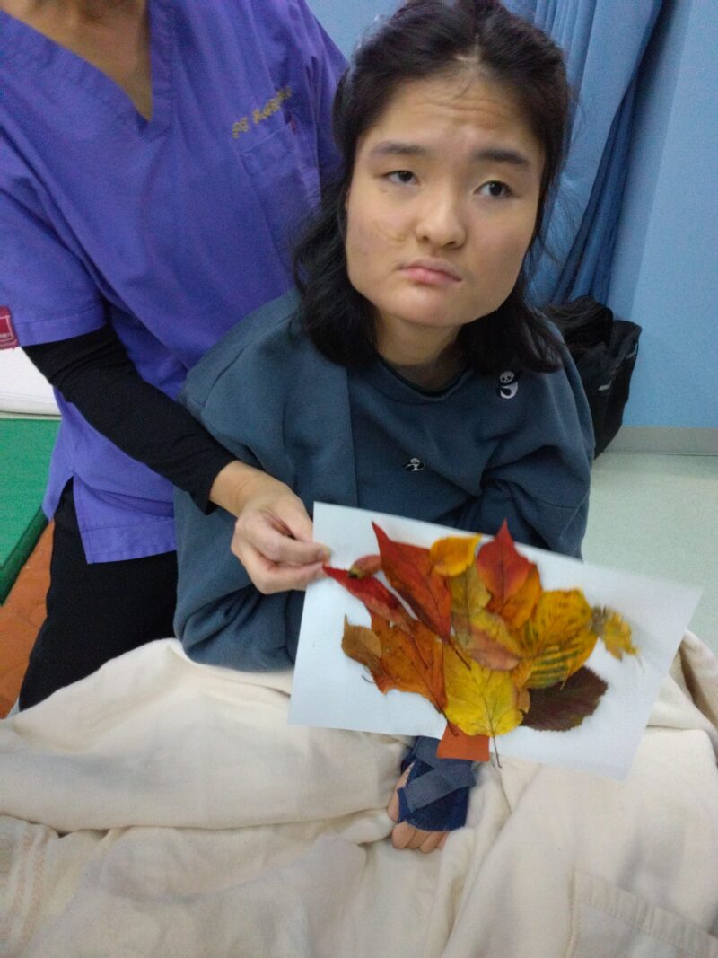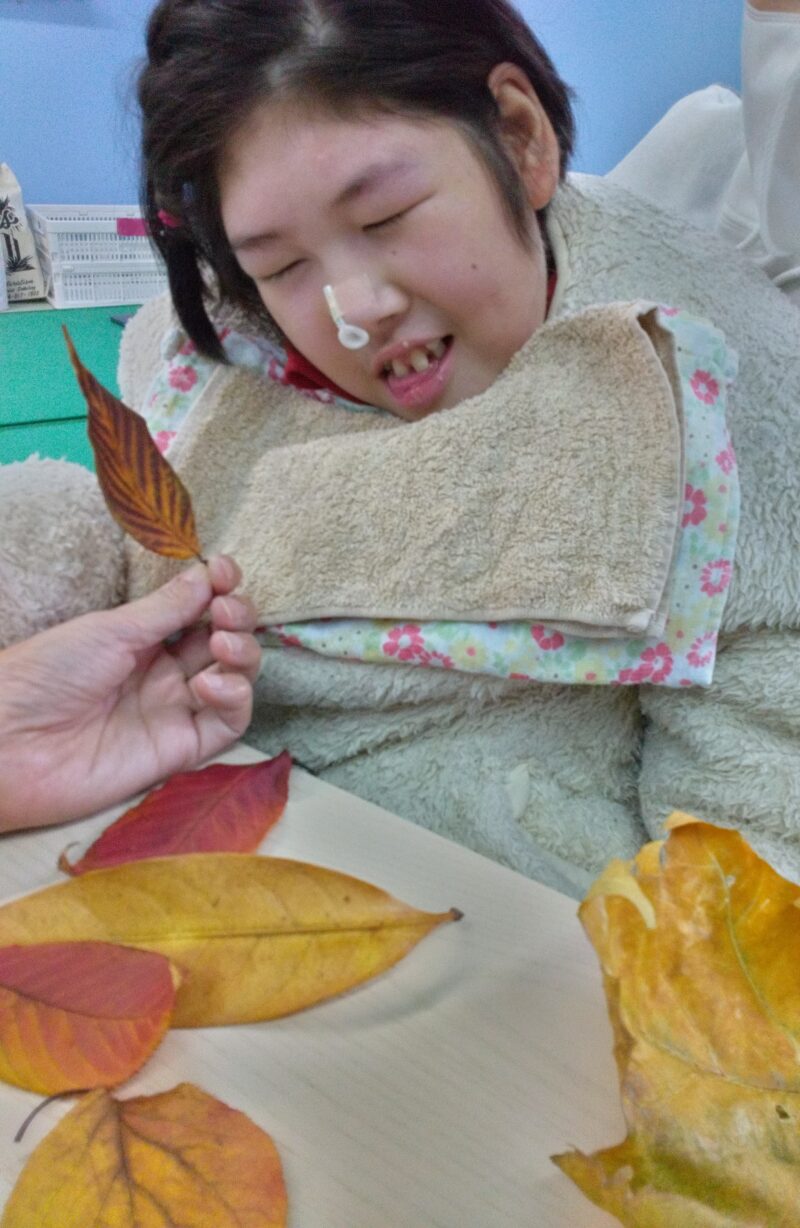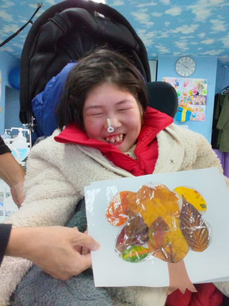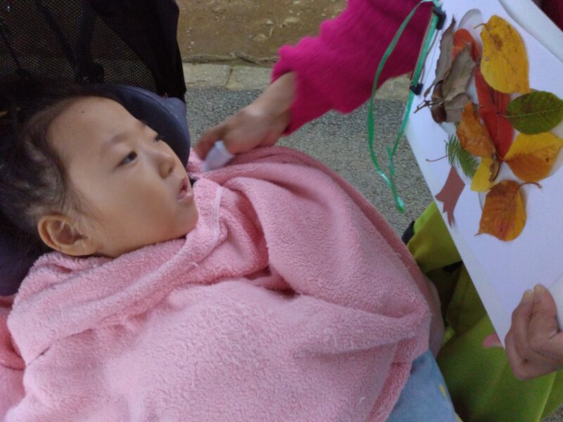 公園で落ち葉を拾い、その場で紅葉製作に取り組んだお子さまもいらっしゃいます。