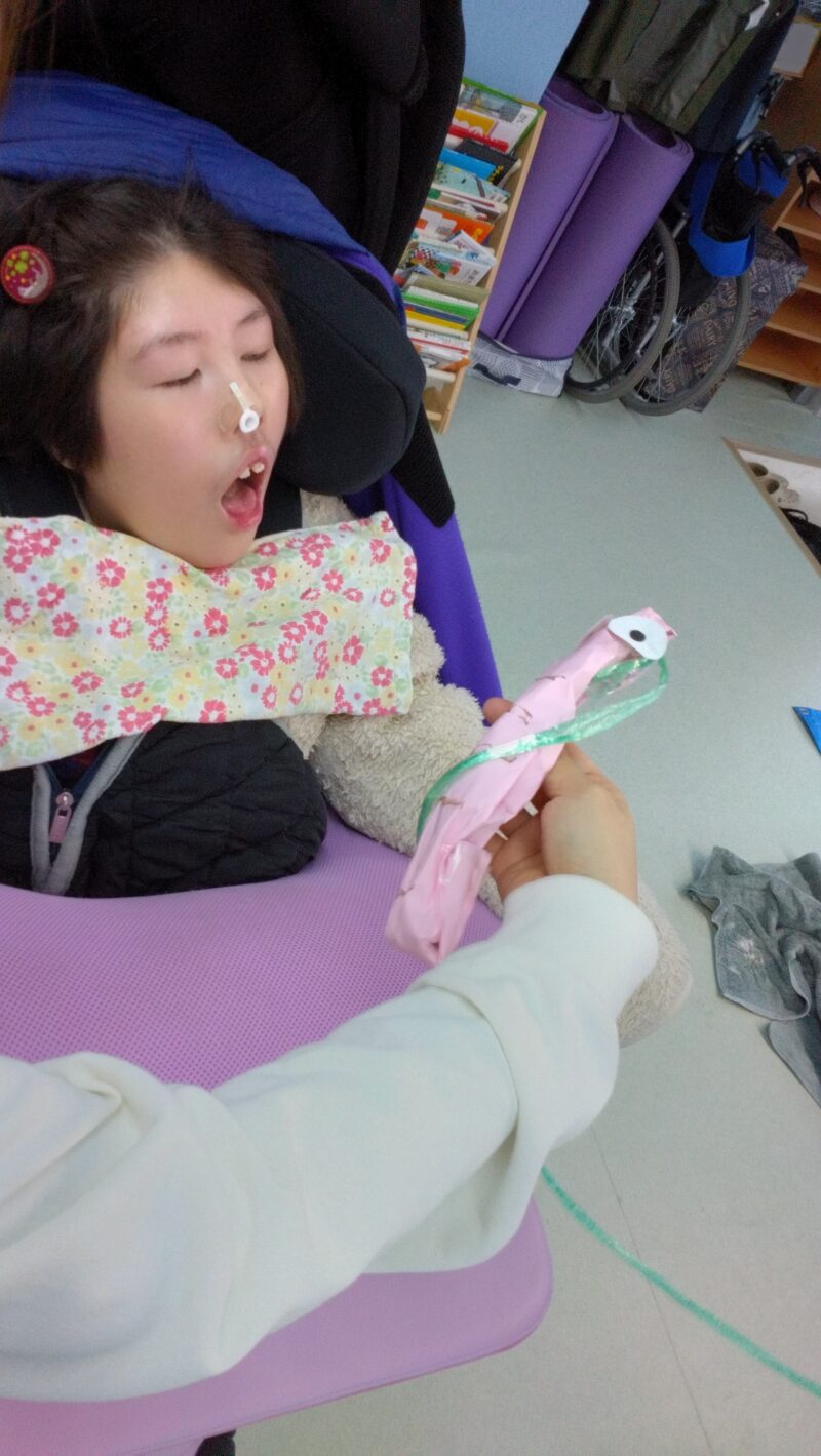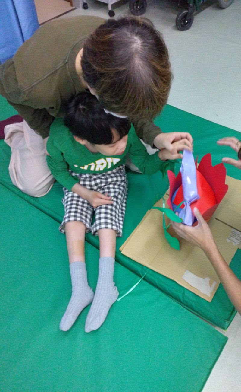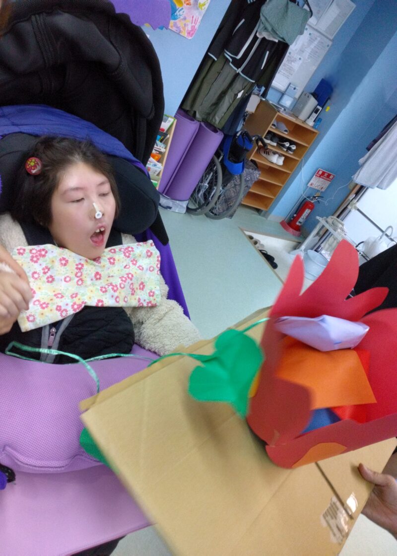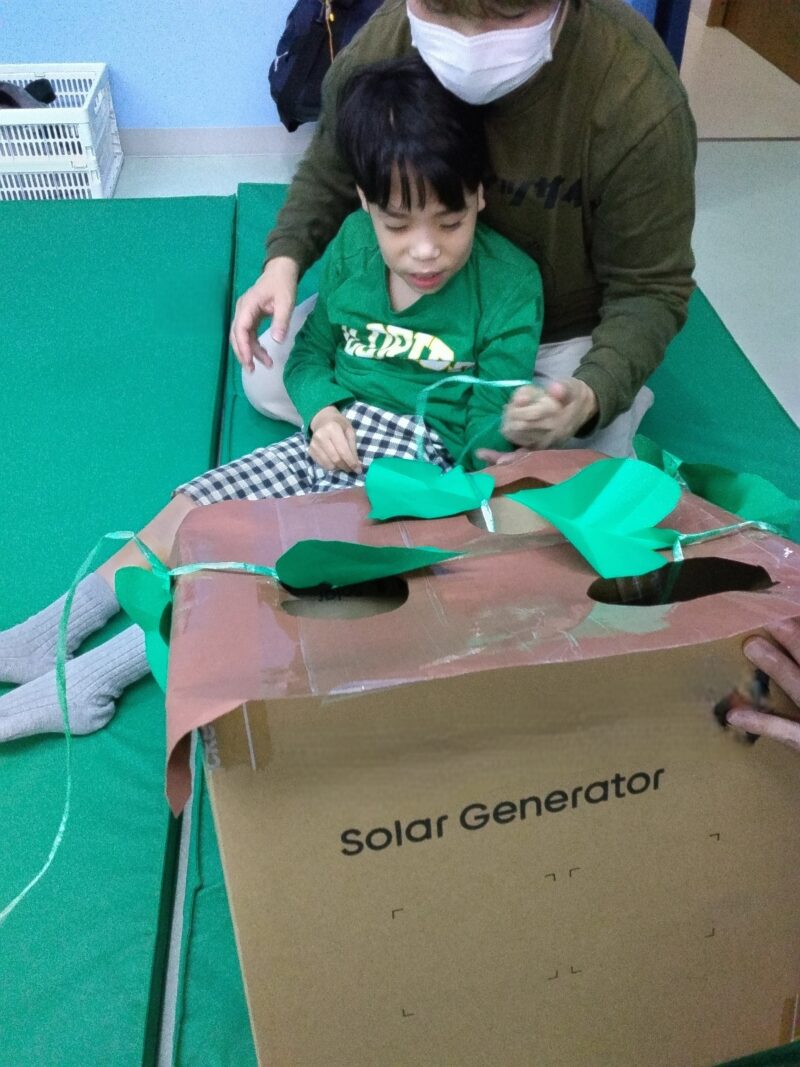 製作が得意な児童指導員が、あっという間に楽しい仕掛けに作り上げてくれました。