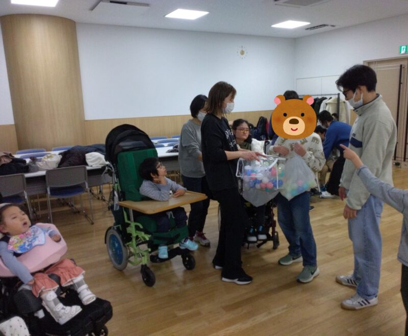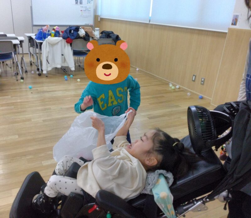 ウィズ・ユーさんのお子さまとるりいろのお子さまがペアになり、ボール集めの競争だ!