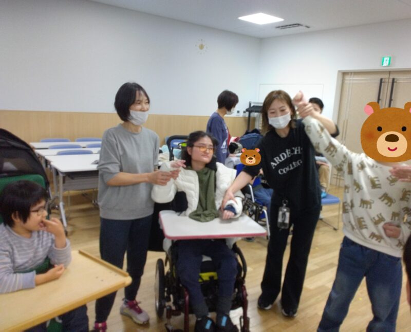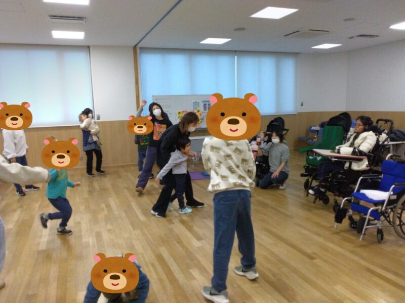 皆で「ジャンボリミッキー」の曲に合わせて踊りました。