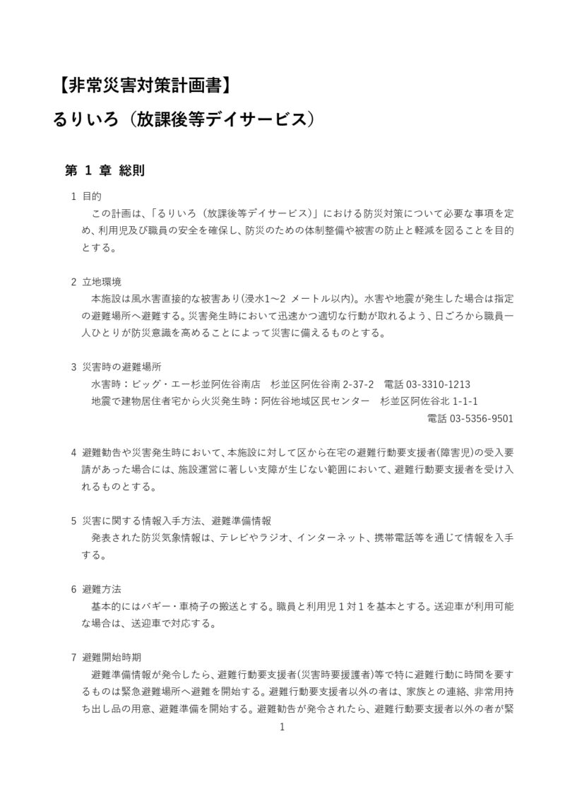 非常災害対策計画書